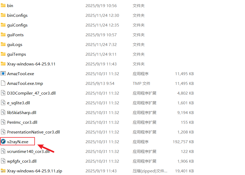 第一步,按照地址下载v2rayN客户端,然后解压缩后打开应用: