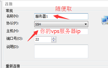 随便取个名字,然后把你的服务器ip填上