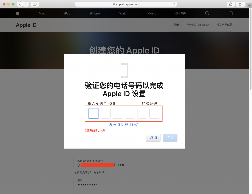 5.填入手机验证码到文本框中,点击继续。